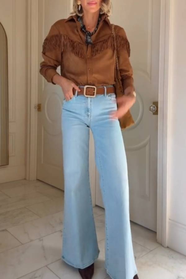 Light blue high-waist wide-leg vintage denim flared pants