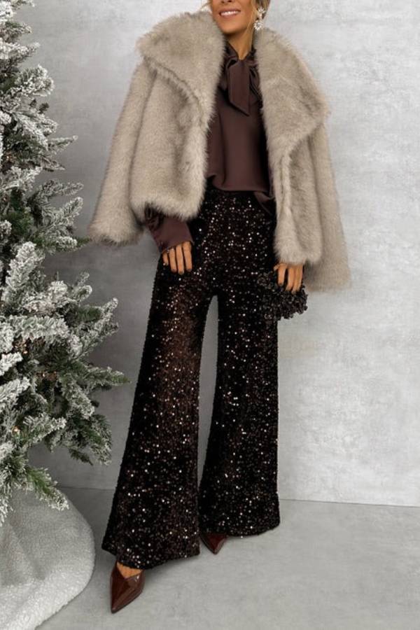 Made of light gray faux fur, with a wide collar and short cut, the fur is fluffy and soft, the wide collar design enhances the overall look, and the short cut is suitable for various height proportions.