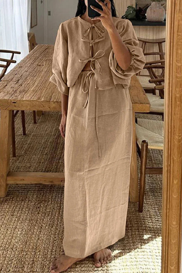 Retro puff sleeve two piece set