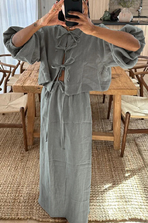 Retro puff sleeve two piece set