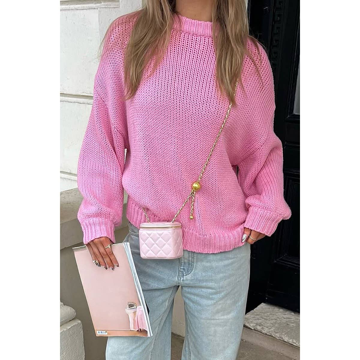 Solid Chunky Knit Balloon Sleeve Sweater