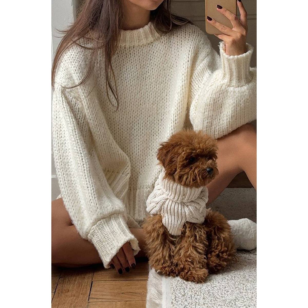 Solid Chunky Knit Balloon Sleeve Sweater