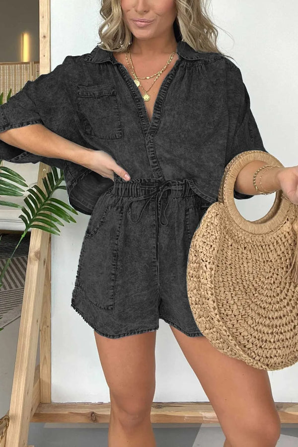 Women's Casual Washed Denim Tencel Set