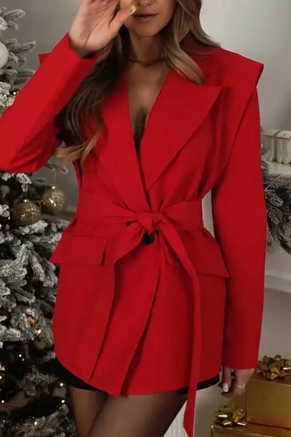 Womens Laple Collar Solid Color Casual Coat with Temperament