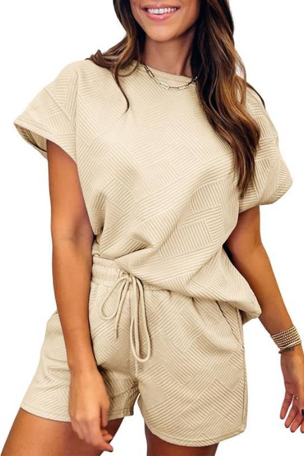 Women's Solid Textured Drawstring Shorts Set